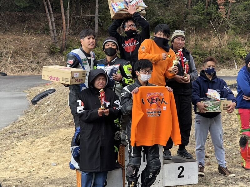 それとお正月恒例のお雑煮耐久レース(1月2日・松山オートランド)にも参戦してきました、昨年幻の表彰台だった(集計ミスによれ4位に)のですがちょっと手応えを感じたので今年はややガチでマシンを用意て参戦してきました。