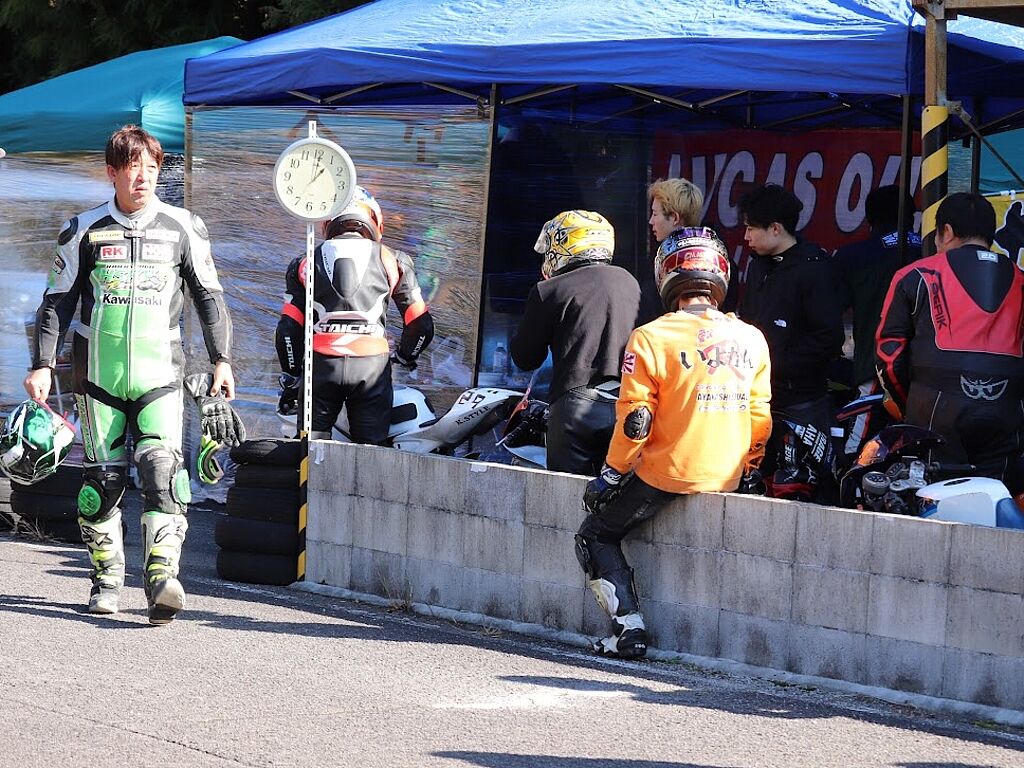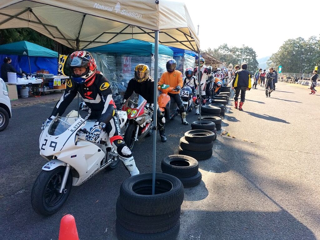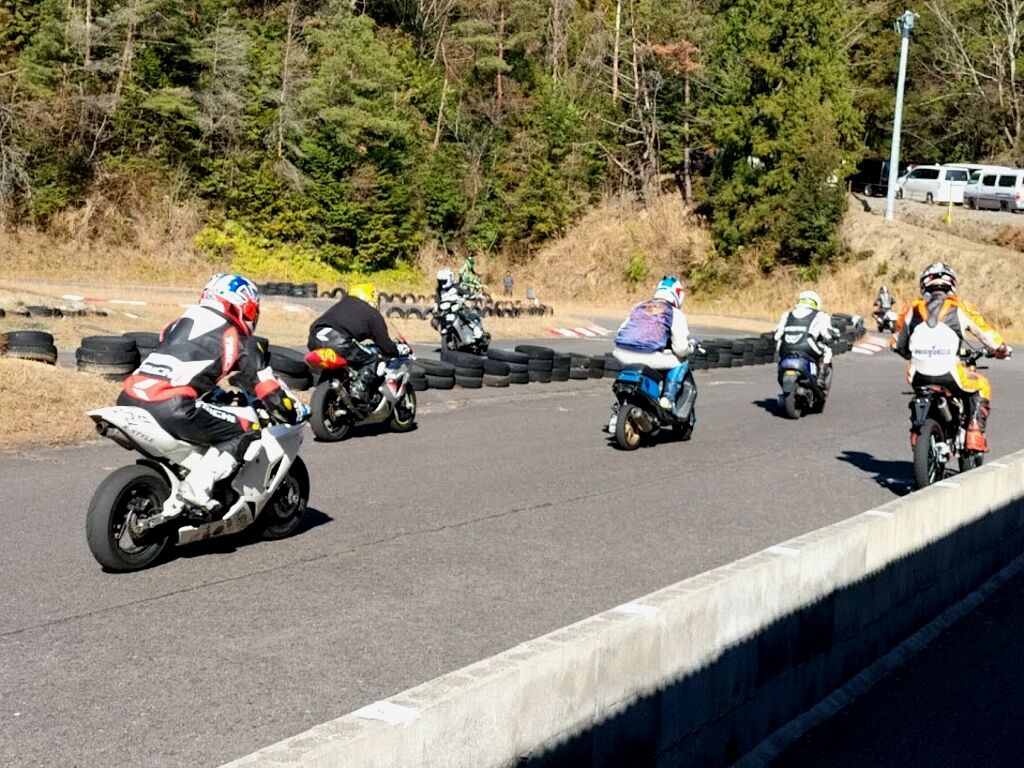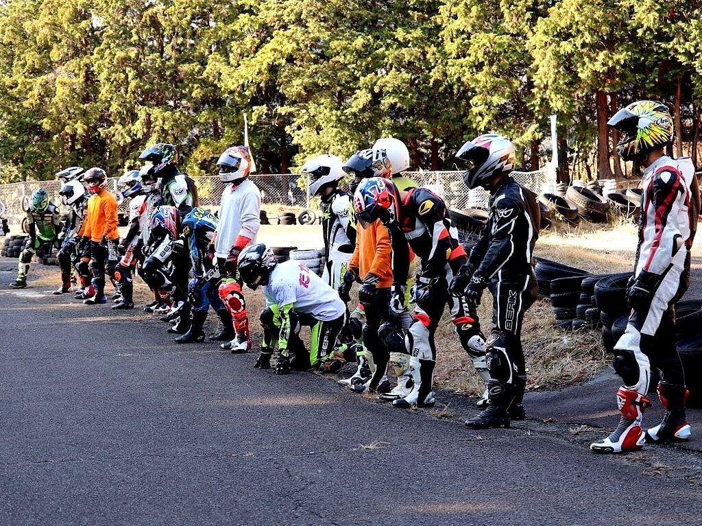 通勤やツーリング装備での参加OKです、こちらは膝スリ禁止で安全のためツナギを着て走られる方は必ずバンクセンサーを取り外して上着にトレーナーやジャンバーを着てツーリングっぽい格好で走ってください。