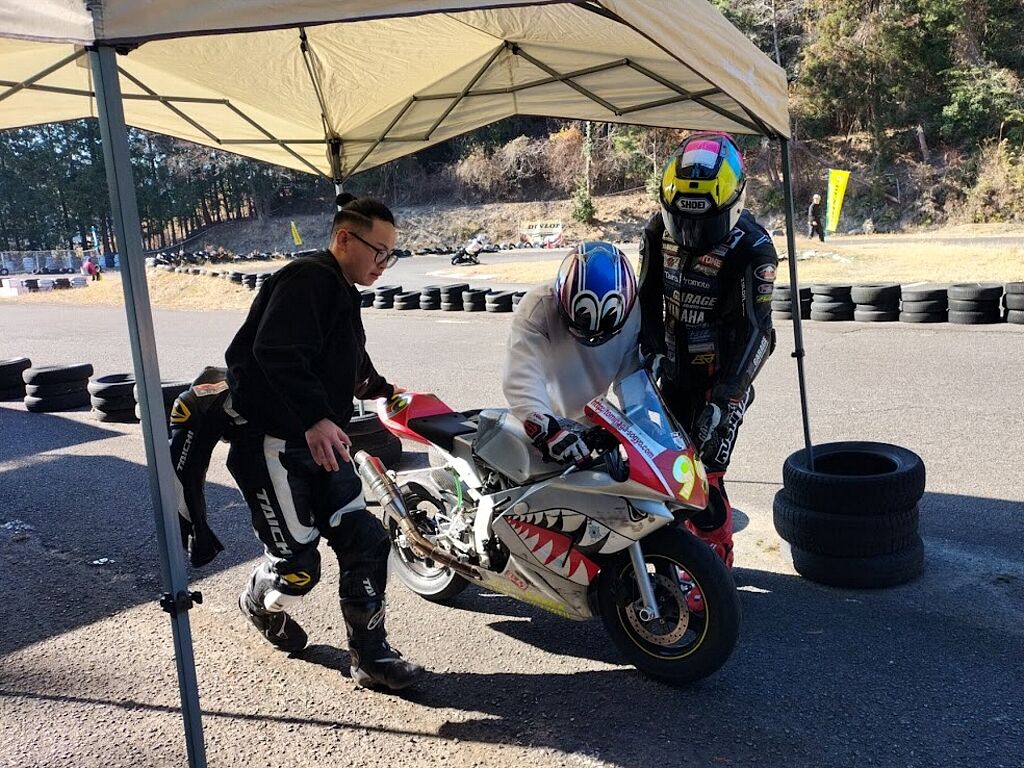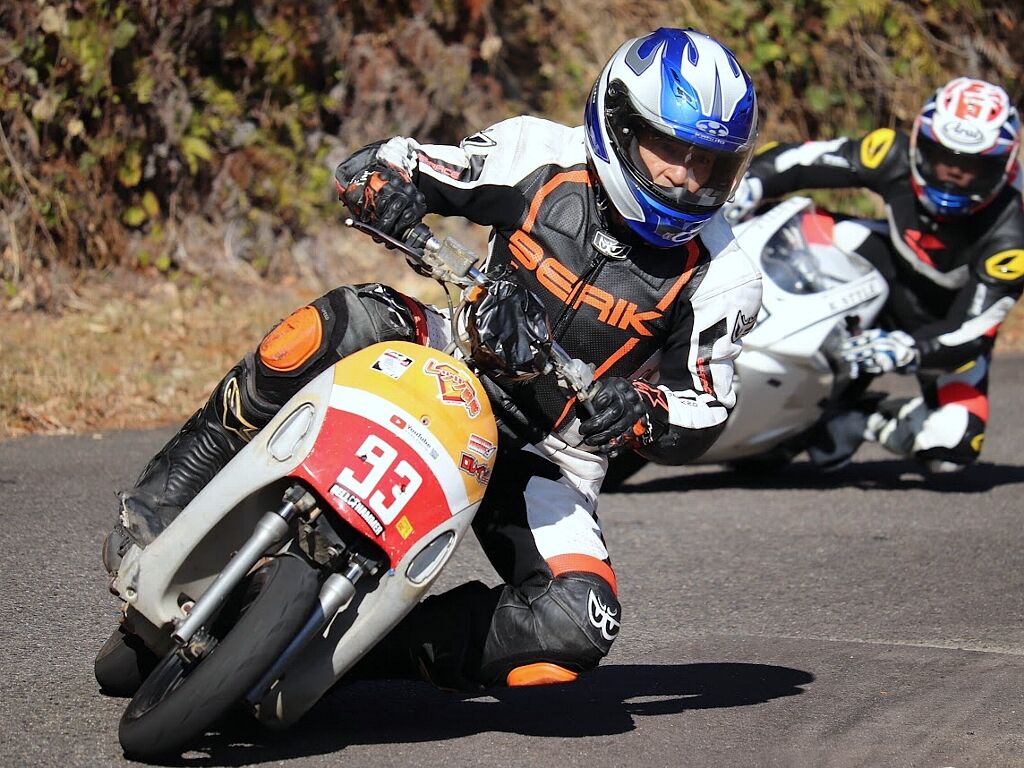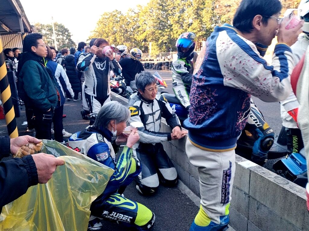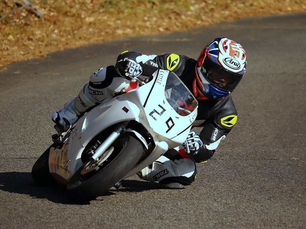 通勤やツーリング装備での参加OKです、こちらは膝スリ禁止で安全のためツナギを着て走られる方は必ずバンクセンサーを取り外して上着にトレーナーやジャンバーを着てツーリングっぽい格好で走ってください。